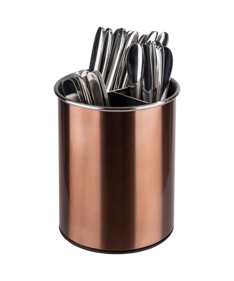 Der Besteckkorb von APS erleichtert nicht nur die Organisation des Küchenzubehörs, sondern verleiht dem Interieur jeder Küche auch Eleganz und Stil. Seine kupferne Farbe verleiht ihm einen einzigartigen Charme und macht ihn zu einem ästhetischen Designelement, das die Blicke auf sich zieht und dem Küchenraum einen modernen und stilvollen Look verleiht.