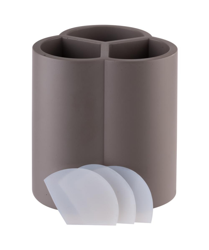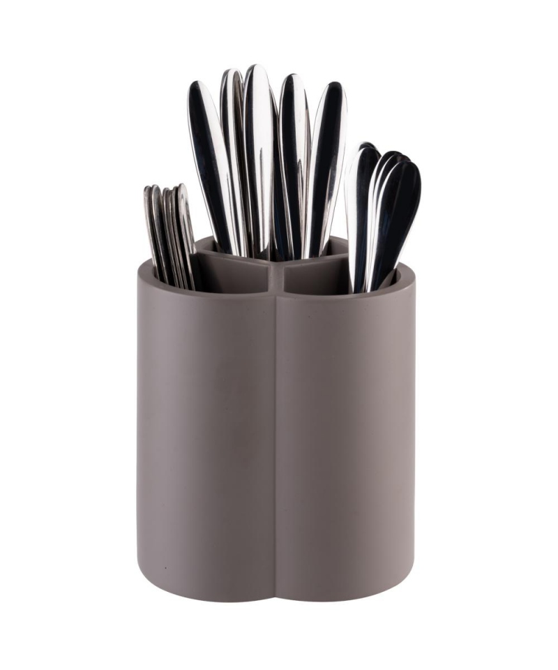 Die robuste Konstruktion aus hochwertigen Materialien wie strapazierfähigem Silikon und stabilem Beton garantiert Langlebigkeit und Zuverlässigkeit. Die graue Farbe verleiht ihm außerdem ein schlichtes und modernes Aussehen, das sich perfekt in eine Vielzahl von Küchenstilen einfügt. Ganz gleich, ob Ihre Küche traditionell, minimalistisch oder modern eingerichtet ist, dieser Besteckkorb wird die perfekte Ergänzung zu ihrer Einrichtung sein.