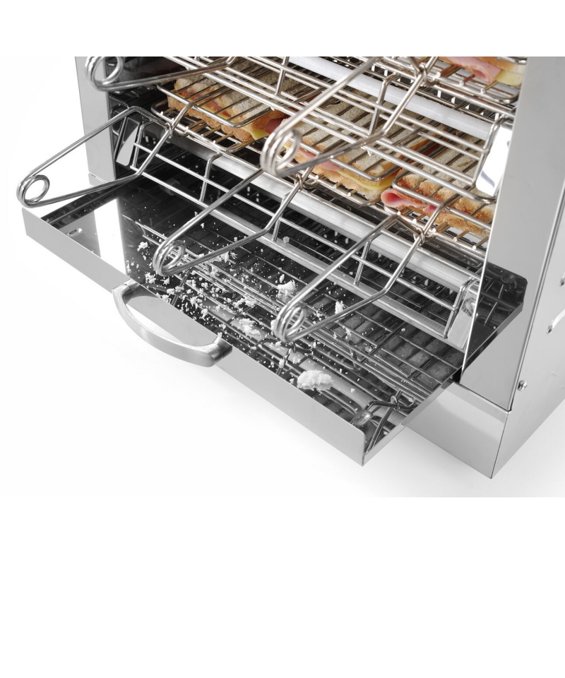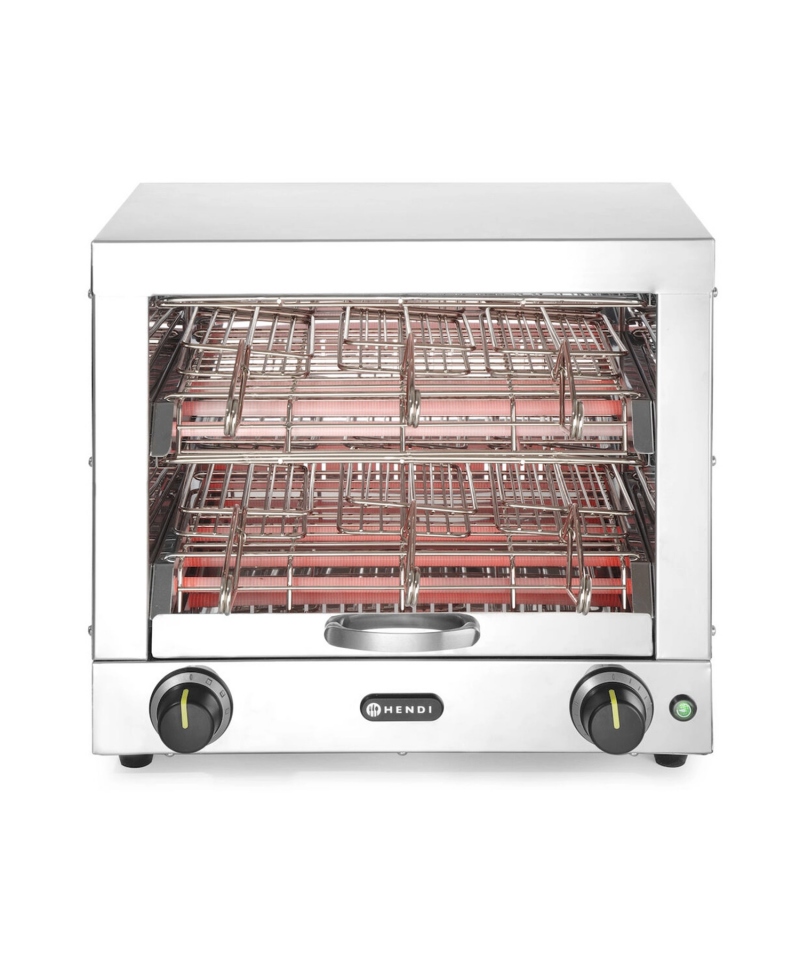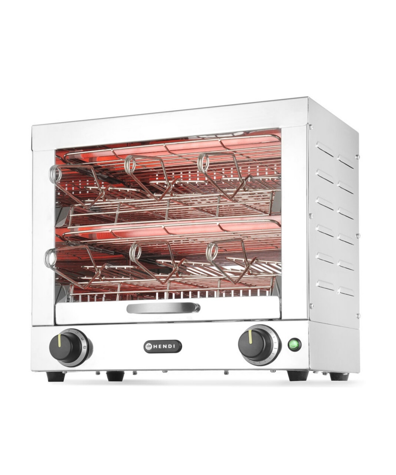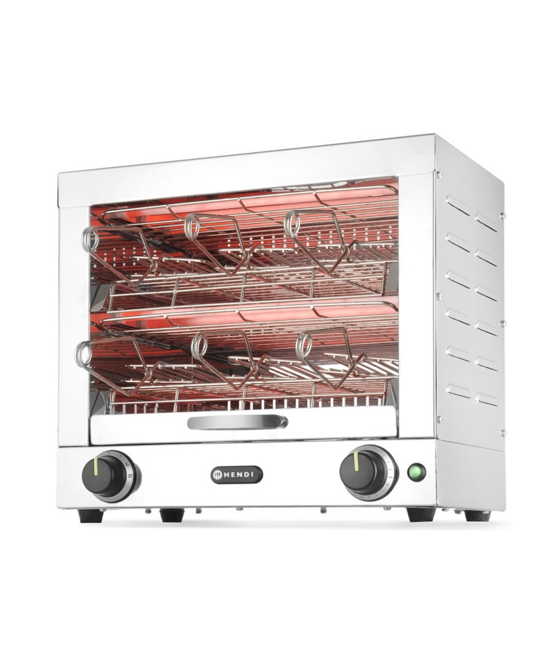- Schnelles Aufheizen: Der HENDI-Toaster ist mit Quarzlampen ausgestattet, die dafür sorgen, dass die Sandwiches schnell und gleichmäßig erhitzt werden. So erhalten Sie perfekt knuspriges Brot und geschmolzenen Käse in nur 30 Sekunden!