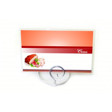 Laminierte Preisschilder aus Karton + doppelseitigem Laminat mit Rändern. Format A6.