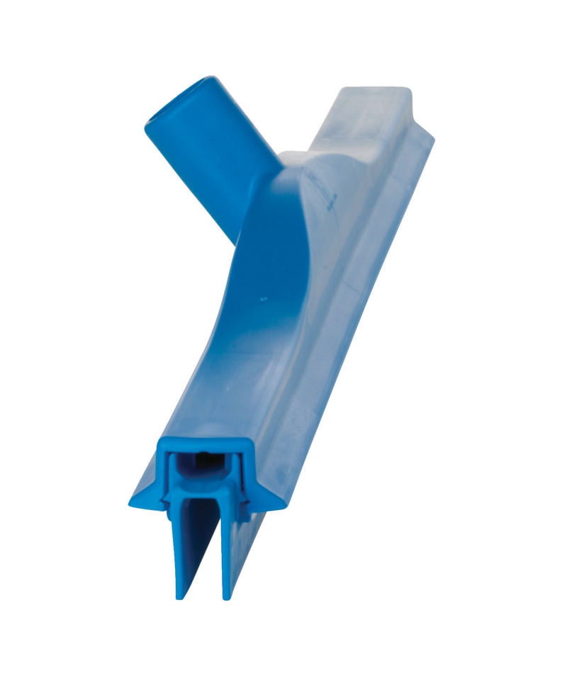 Bodenwischer mit austauschbarem Blatt in einer Kartusche aus thermoplastischem TPE-Kautschuk, an einem Mast montiert. Das Gehäuse des Wischers besteht aus Polypropylen und hat keine scharfen Kanten, Ritzen oder Ecken, in denen sich Schmutz ansammeln könnte. Spezielles Werkzeug zum Waschen und Reinigen von flachen Oberflächen, Böden, in Bereichen, in denen Hygiene erforderlich ist. Wischerstab separat erhältlich.