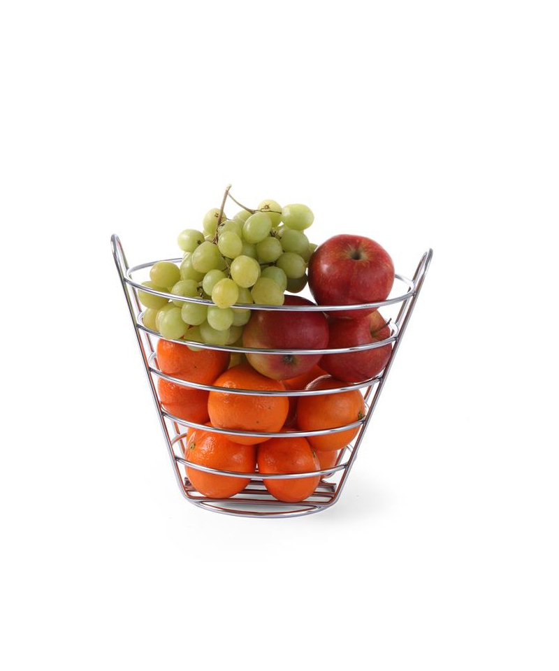 Der Obstkorb ist ein funktionaler und dekorativer Behälter, entwickelt für den professionellen Einsatz in der Gastronomie – etwa bei Buffets, Hotels, Restaurants – sowie für elegante Konditoreien oder Heimküchen. Gefertigt aus hochwertigen Materialien verbindet er Langlebigkeit mit ästhetischer Anmutung und ermöglicht die attraktive Präsentation von frischem Obst, Gebäck oder Snacks. Seine Konstruktion erleichtert die Organisation des Raums und das Servieren im Gästebereich.