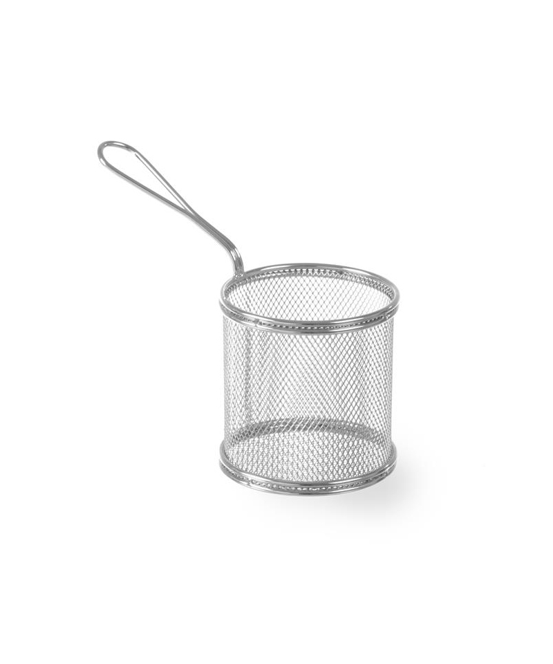 Ein mini-Körbchen zur Ausgabe von frittierten Snacks (z. B. Pommes, Zwiebelringe, Hähnchenflügel). Gefertigt aus Edelstahl mit einem praktischen Griff und stabiler Basis – sorgt für sicheres Tragen und ansprechende Präsentation.