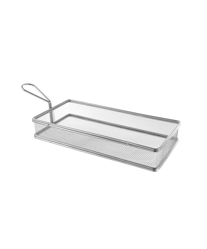 Ein kompaktes Gastronomie-Körbchen zur Ausgabe von frittierten Snacks wie Pommes, Zwiebelringen oder Mini-Hähnchenflügeln. Vollständig aus Edelstahl gefertigt, robust und spülmaschinengeeignet.