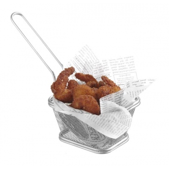 Ein Mini-Snack-Korb mit den Maßen 105×90 mm aus Edelstahl, entwickelt für den professionellen Einsatz bei frittierten Snacks wie Pommes, Zwiebelringen, Wings oder Tempura. Die robuste Konstruktion und kompakten Maße ermöglichen eine schnelle Portionierung im Buffet- oder Veranstaltungsbereich sowie Barservice. Edelstahl sorgt für einfache Reinigung und lange Haltbarkeit auch bei intensivem Einsatz.
