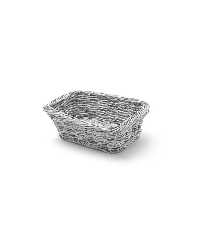 Der rechteckige Korb in grauer Farbe mit den Maßen 190×130 mm eignet sich ideal zur Präsentation von Brot, Obst, Snacks und kleinen Lebensmitteln. Gefertigt aus robustem Polypropylen mit einem geflochtenen Wicker-Effekt, verbindet er eine elegante Optik mit hoher Beständigkeit im täglichen Gebrauch. Er ist leicht, stabil und einfach zu reinigen – perfekt für Hotels, Restaurants und Catering.