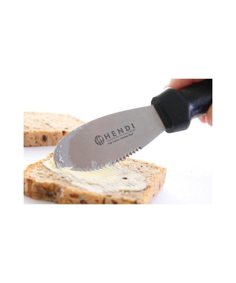 Zackiges Streichmesser HENDI 855768 ist ein funktionales und präzises Küchenwerkzeug für die professionelle Gastronomie sowie für den privaten Gebrauch. Es eignet sich ideal zum gleichmäßigen Verteilen von Butter, Aufstrichen, Frischkäse und Cremes und kann auch für dekorative Schnitzarbeiten an Obst und Gemüse verwendet werden.