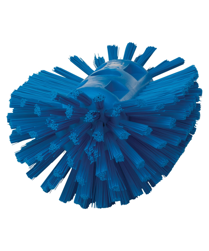 Rundbürste mit mittelharten Borsten. Ideal zum Schrubben der Innenseite von großen Industrietanks und großen Kanalisationsöffnungen. Die Borsten sind auf einem versenkten Schaber aus Edelstahl montiert. Erhältlich in verschiedenen Farben