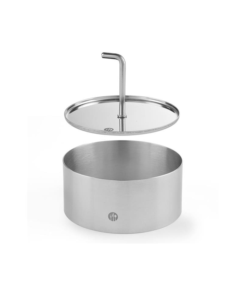 Die Drückplatte Ø 80 mm für Küchen- und Konditorringe ist ein professionelles Werkzeug aus Edelstahl, entworfen für den Einsatz in Konditoreien, Bäckereien und Großküchen. Sie dient zum präzisen Andrücken oder Formen von Inhalten in Formringen – wie Biskuitböden, Mousses, Cremes oder geschichtete Desserts. Ihre robuste Bauweise ermöglicht eine gleichmäßige Oberfläche und ästhetisch ansprechende Portionen.
