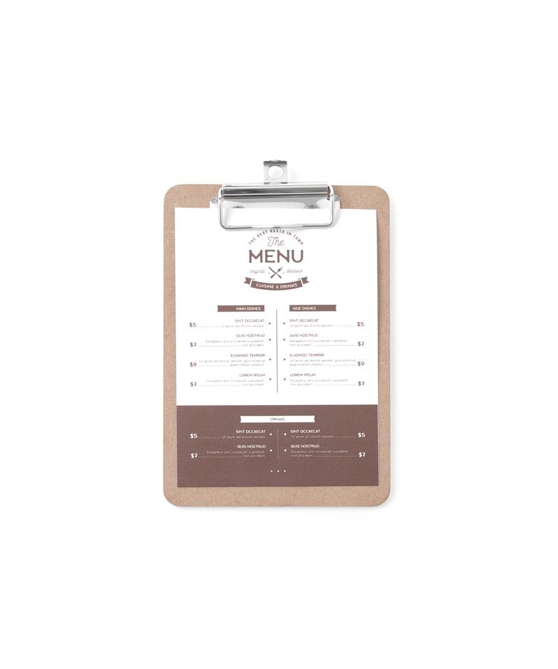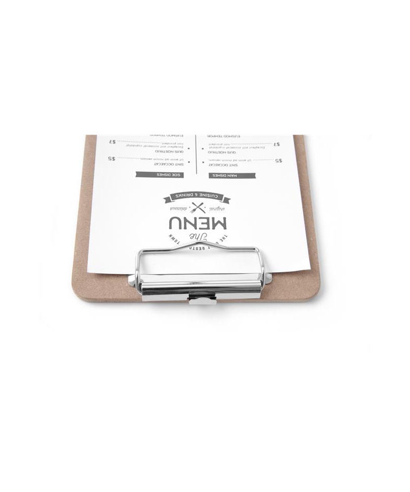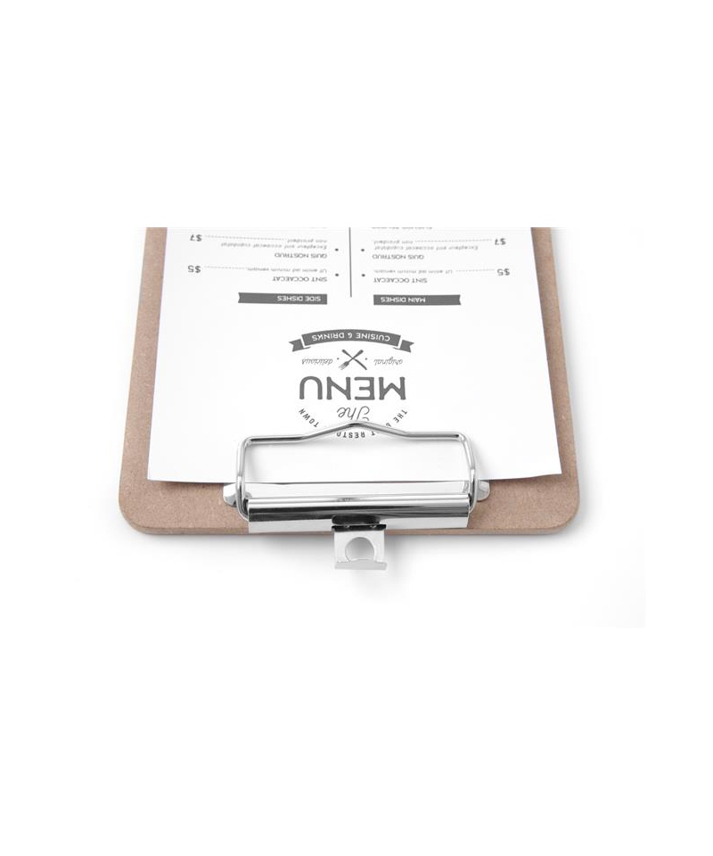 Das Menüunterlage von HENDI ist eine praktische und elegante Lösung zur Präsentation von Speisekarten in Restaurants, Cafés, Bars und Hotels. Gefertigt aus robustem MDF und ausgestattet mit einer stabilen Metallklammer, ermöglicht es einen schnellen Austausch von Menüs oder Angeboten.