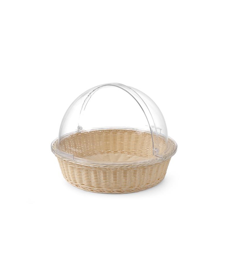 Die Abdeckung besteht aus robustem Polycarbonat, das bruchfest und für den täglichen professionellen Einsatz geeignet ist. Die runde Form passt perfekt zu den HENDI-Brotkörben 426920, 426982 und 426999.