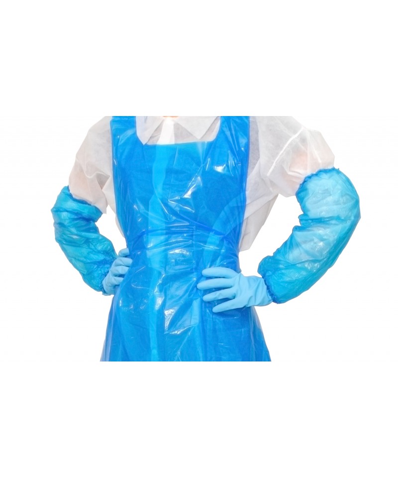 Kunststoffschürzen, blau mit einer Dicke von 25 Mikron. Abmessungen 150X90 cm. Packung mit 85 Stück auf einer Rolle.