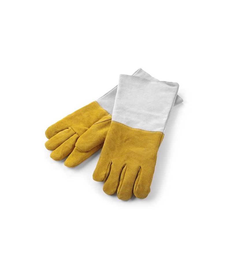 Schutzhandschuhe aus Leder mit fünf Fingern und einer Länge von 45,0 cm.