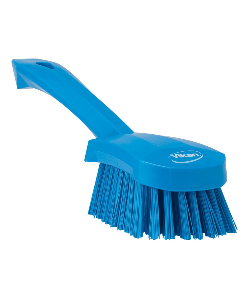 Diese Waschbürste ist ideal für die Entfernung von hartnäckigem Schmutz auf Förderbändern, Produktionslinien, Maschinen und Oberflächen in der Lebensmittelzubereitung. Sie verfügt über einen kurzen, ergonomischen Griff für eine einfache und effektive tägliche Reinigung.