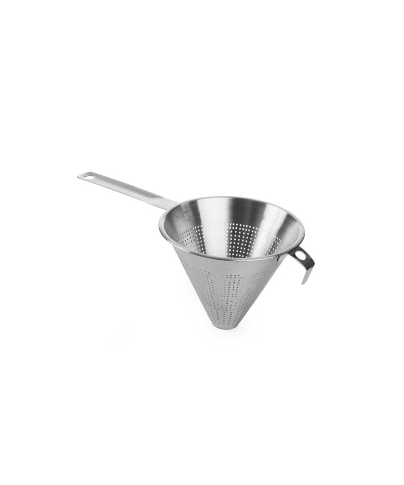 Das professionelle chinesische Sieb von HENDI ist aus hochwertigem 18/10-Edelstahl gefertigt und für den Kontakt mit Lebensmitteln zugelassen. Der Drahtgriff ermöglicht es, das Sieb an einem leicht zugänglichen Ort aufzuhängen, damit es immer griffbereit ist. Es zeichnet sich durch hohe mechanische Festigkeit und Korrosionsbeständigkeit aus. Das Produkt ist spülmaschinengeeignet.