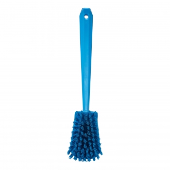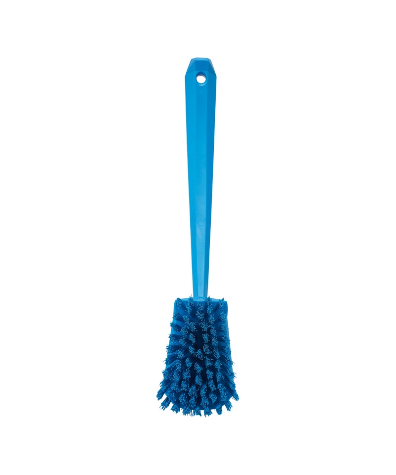 Diese Mehrzweckbürste verfügt über mittelharte Borsten aus Polypropylen und Polyester. Der lange Stiel dieses Werkzeugs ermöglicht es Ihnen, Bereiche des Geräts zu erreichen, die mit herkömmlichen Handbürsten nur schwer zugänglich sind. Die schräg in das Polypropylen eingebetteten Borsten sind extrem widerstandsfähig und hart, so dass sie sich ideal für die Reinigung tiefer Eimer, Behälter und Wannen eignen. Die Bürste ist sowohl für lebensmittelverarbeitende Betriebe als auch für den Hausgebrauch geeignet.