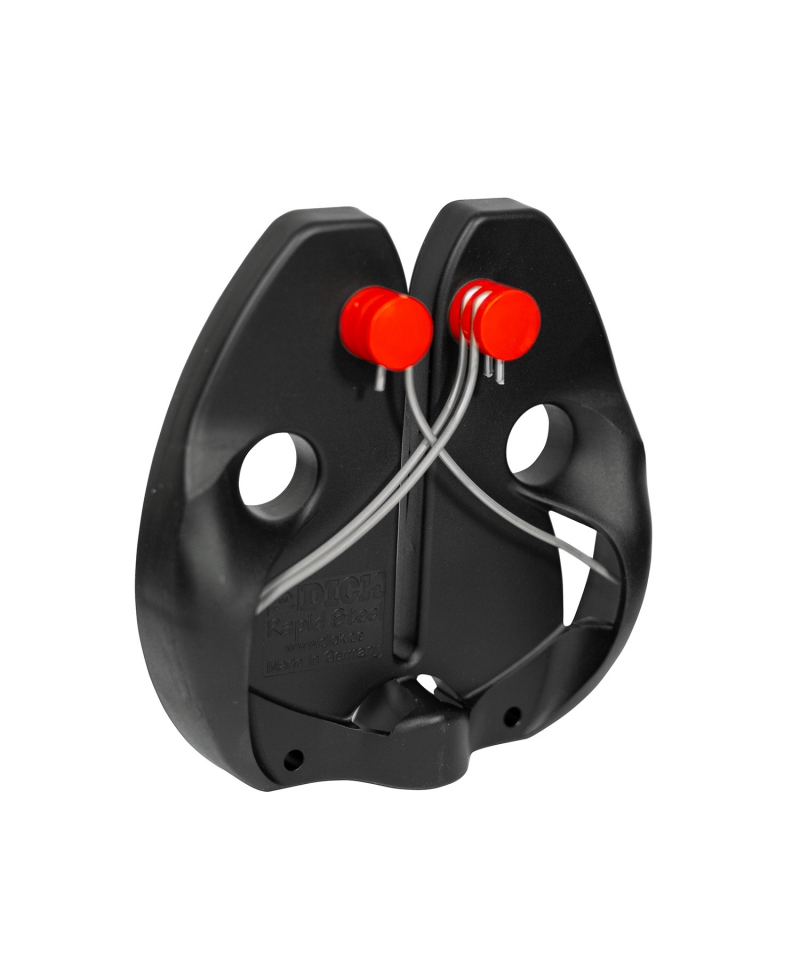 Das Schärfgerät hat eine ergonomische Form für einen besseren und sichereren Griff. Dank der robusten Spannfedern und der Schärfstäbe aus rostfreiem Stahl ist die Wartung und Pflege einfach und kostengünstig. Die Mechanik des Geräts ist sicher und hygienisch in einem abschließbaren Mechanikgehäuse geschützt. Sie können den Rapid Steel auch auf einer Arbeitsplatte oder einem Tisch befestigen.