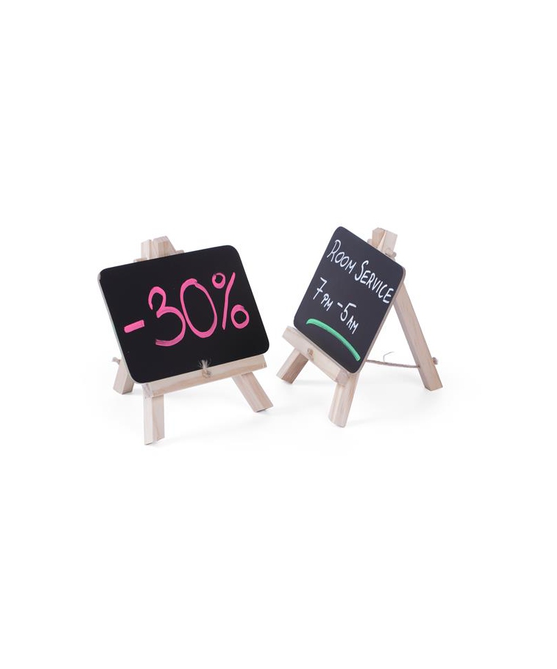 Das Tischschild in der Basisvariante ist ein elegantes und funktionales Kennzeichnungselement für Tische, Buffetstationen oder Servicebereiche in Restaurants, Hotels, Cafés und auf Veranstaltungen. Die schwarze Tafel mit Holzfuß bietet klare Botschaftsdarstellung – z. B. Gerichtsname, Aktion, Kategorie oder Menü – und dient gleichzeitig als dekorativer Akzent. Geliefert als Set von zwei Stück – ideal zur schnellen Beschilderung mehrerer Stellen.