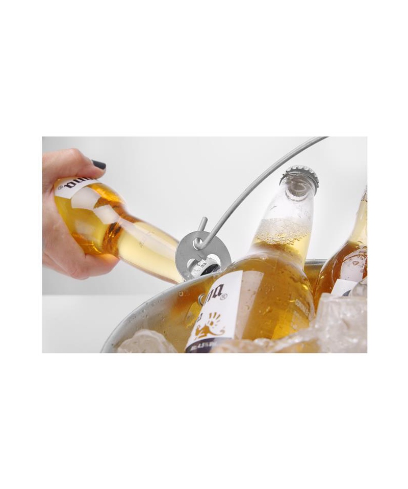 Der Bier-Eimer mit seitlichem Flaschenöffner (Basisversion) ist ein professionelles Bar-Zubehör aus Edelstahl mit einem Griff, in dem ein Flaschenöffner integriert ist. Dieses Produkt ermöglicht die komfortable Ausgabe gekühlter Flaschengetränke in Bars, Restaurants oder Biergärten – der seitliche Öffner reduziert den Bedarf an separatem Werkzeug.