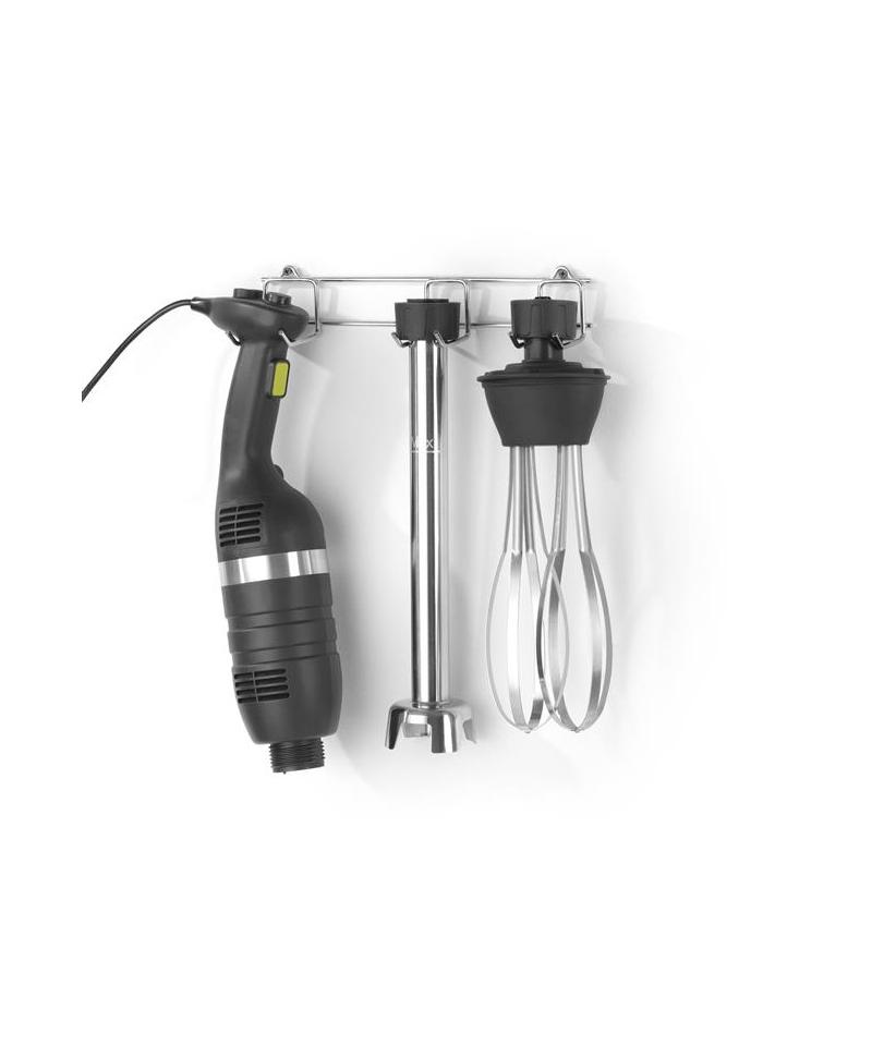 - Für den professionellen Einsatz in Eisdielen, Restaurants, Hotelküchen zur Zubereitung von z.B. Eismischungen, Gemüsesuppen, Pürees, Saucen, Füllungen, Mayonnaise, Tomatenmark, Pesto usw. - Set bestehend aus drehzahlgeregeltem Mixerantrieb, Mixarm, Schlagarm und Wandaufhängung - Im Gehäuse aus stabilem Polyamid in mattschwarz - Schlagarm, 250 mm lang, besteht aus zwei Edelstahlstäben - Mixarm, 400 mm lang, und Edelstahlklinge - Geeignet für Gefäße bis zu 60 l zum Mixen und 50 l zum Schlagen - Drehzahl: 4 000-16 000 U/min - Gewicht (nur Antrieb): 1,76 kg