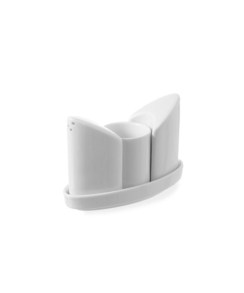 Das Gewürzset von HENDI besteht aus hochwertigem Porzellan und ist ein praktisches, stilvolles Tischaccessoire – ideal für Restaurants, Hotels sowie den privaten Gebrauch. Das 3-teilige Set umfasst einen Salzstreuer, einen Pfefferstreuer und einen Zahnstocherhalter, platziert auf einer passenden Porzellanschale. Das Material ist kratzfest, pflegeleicht und spülmaschinengeeignet.