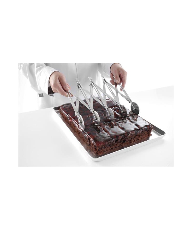 Der verstellbare Teigmarkierer von HENDI ist ein präzises Werkzeug für professionelle Bäckereien, Konditoreien und Gastronomiebetriebe. Er ermöglicht ein gleichmäßiges Markieren und Portionieren von Kuchen, Torten und anderen Backwaren.