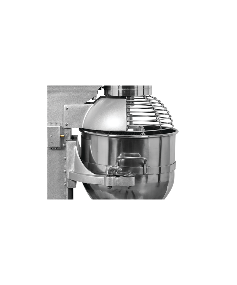 Die geräumige Rührschüssel mit 40L Fassungsvermögen und einem Innendurchmesser von 400mm, die mit einem intuitiven Drehknopf abgesenkt wird, erleichtert die Demontage, Entleerung und gründliche Reinigung. Das Sicherheitssystem wurde um eine Funktion erweitert, die das Starten des Mixers bei abgesenkter Schüssel verhindert, sowie um eine automatische Abschaltung des Geräts, falls versucht wird, die Schutzabdeckung während des Betriebs zu öffnen, um maximale Bedienersicherheit zu gewährleisten.