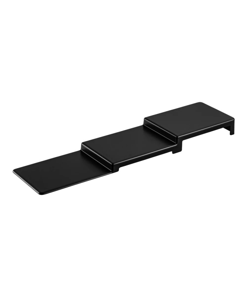 Robuste und minimalistische Produktträgerplatte in Schwarz, 620 × 215 mm – ideal zur Präsentation von Fertigmahlzeiten, Salaten und Snacks. Die flache Bauweise mit Schlitzen sorgt für gute Belüftung, einfache Reinigung und modernes Design. Perfekt für Kühltheken und Buffets.