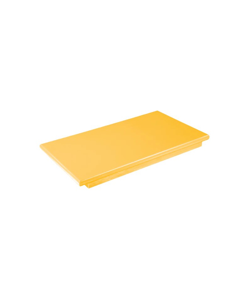 Dieses professionelle Schneidebrett mit integrierter Anschlagkante (Stop Bar) und Gummifüßen ist ein zuverlässiges Werkzeug in Metzgereien, Großküchen, Fleischereien und Cateringbetrieben.