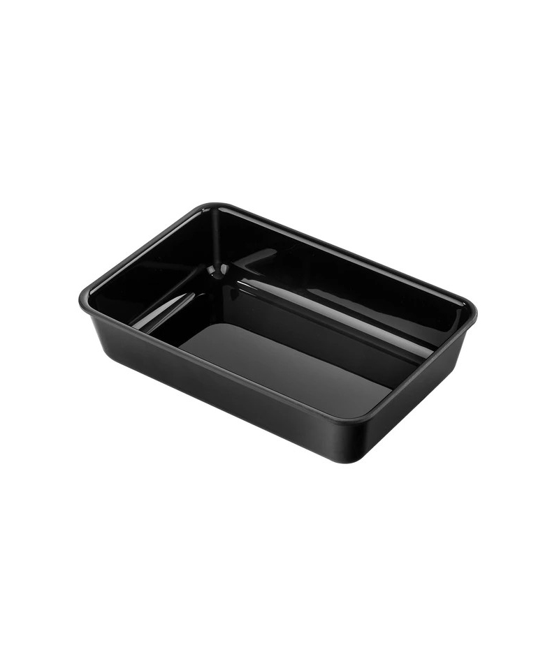 Robuste und minimalistische Produktträgerplatte in Schwarz, 620 × 215 mm – ideal zur Präsentation von Fertigmahlzeiten, Salaten und Snacks. Die flache Bauweise mit Schlitzen sorgt für gute Belüftung, einfache Reinigung und modernes Design. Perfekt für Kühltheken und Buffets.