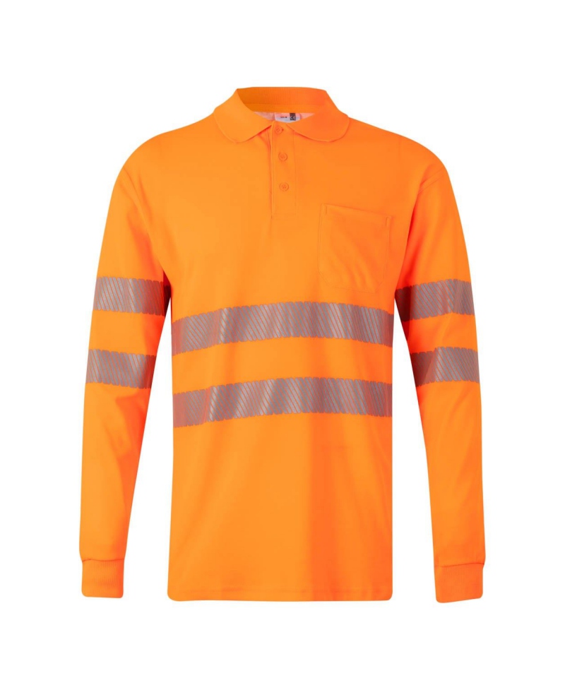 Langarm-Poloshirt aus Baumwolle und Polyester mit segmentierten Reflexstreifen – ideal für hohen Tragekomfort, Sichtbarkeit und ein gepflegtes Erscheinungsbild. Leichtes Piqué-Material, Rippdetails und eine praktische Brusttasche machen es zur optimalen Wahl im Arbeitsalltag.