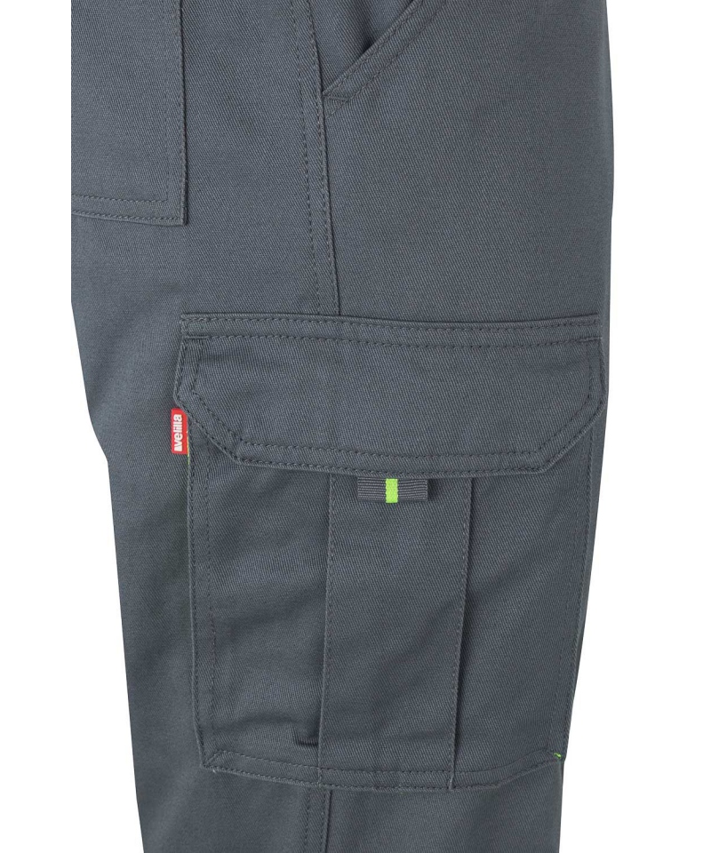 Sechs praktische Taschen sorgen für maximale Funktionalität im Arbeitsalltag: Zwei französische Fronttaschen, zwei seitliche Cargotaschen mit Faltenbalg und zwei Gesäßtaschen bieten viel Stauraum für Werkzeuge und Zubehör. Der elastische Bund passt sich jeder Bewegung an, während doppelte Sicherheitsnähte an besonders beanspruchten Stellen für zusätzliche Langlebigkeit sorgen.