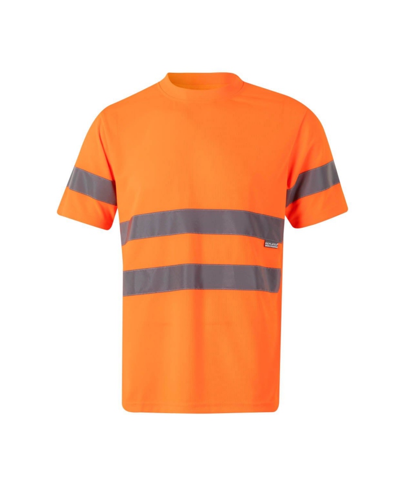 Zwei horizontale Reflexstreifen an Rumpf und Ärmeln in REFLATEX® R-Technologie gewährleisten hohe Sichtbarkeit bei Tag und Nacht. Der gerippte Rundhalsausschnitt und das verstärkte Halsband im Fischgrätmuster (Herringbone) erhöhen den Tragekomfort und die Langlebigkeit auch bei intensiver Nutzung.