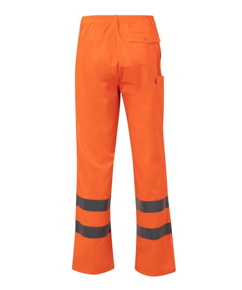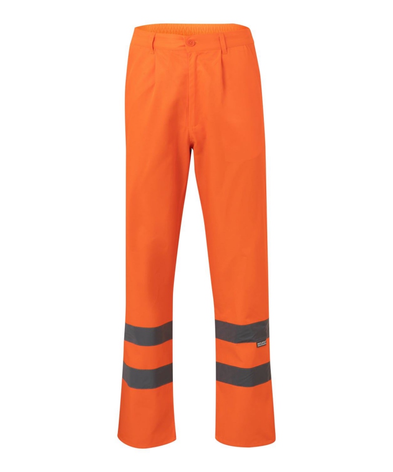 Ein zentraler Reißverschluss mit Knopf, ein elastischer Bund sowie Abnäher und Sicherheitsnaht am Rücken garantieren gute Passform und Bewegungsfreiheit. Zwei reflektierende Streifen an den unteren Beinpartien erhöhen die Sichtbarkeit bei Tag und Nacht.