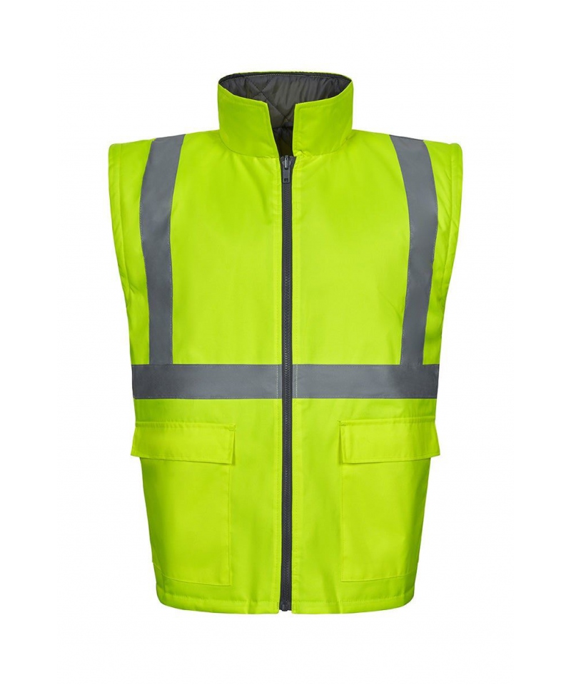 Reflektierende Streifen an Rumpf, Schultern und Ärmeln sorgen für optimale Sichtbarkeit gemäß EN ISO 20471 (Klasse 2). Die Jacke erfüllt zusätzlich die Anforderungen der Normen EN 343 (Wetterschutz) und EN 14058 (Kälteschutz)