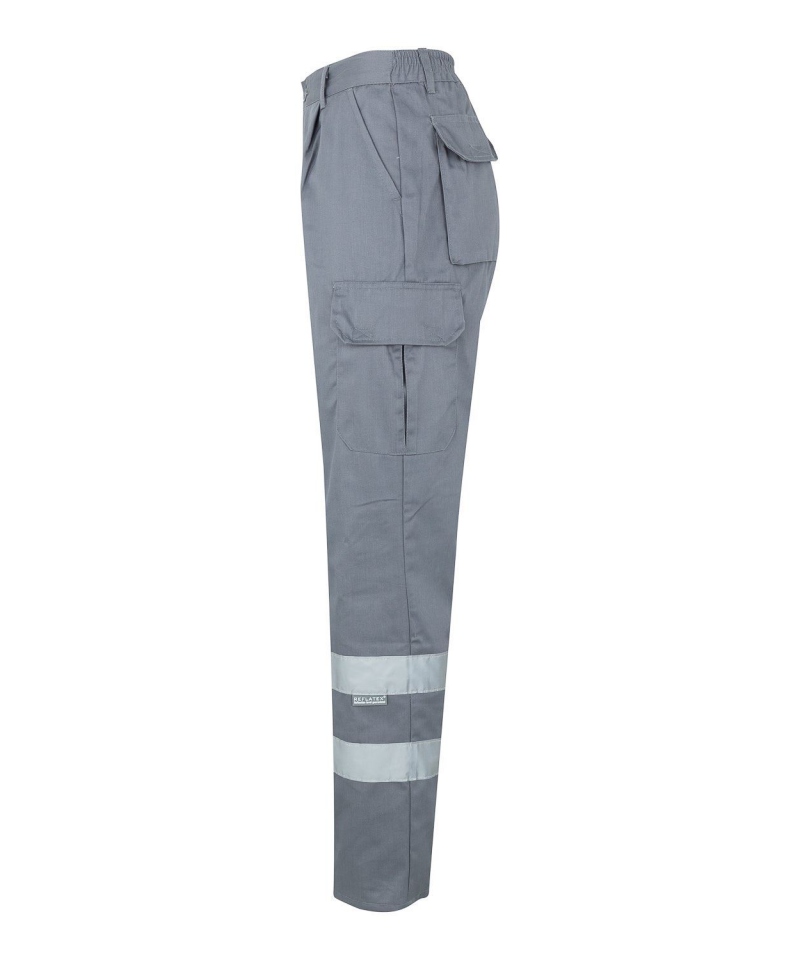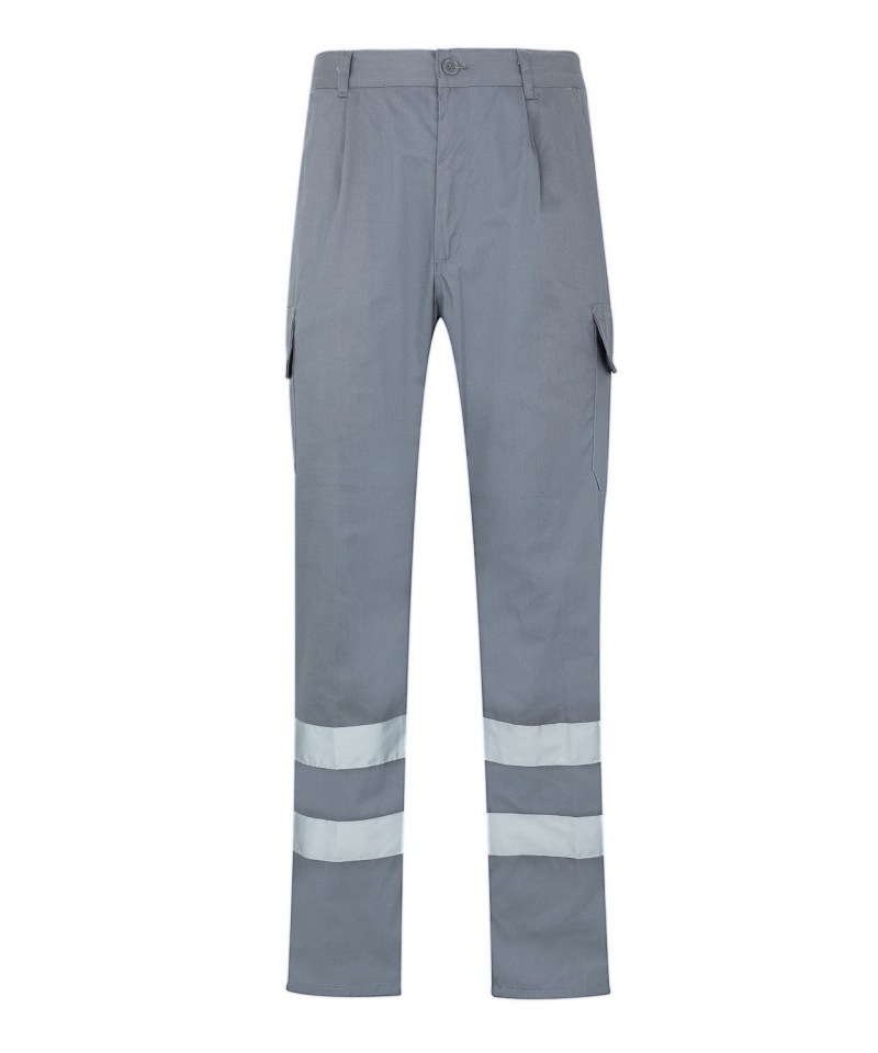 Robuste Arbeitshose mit REFLETEX®-Reflexstreifen für bessere Sichtbarkeit. Aus 65 % Polyester und 35 % Baumwolle (200 g/m²), mit sechs Taschen, elastischem Bund und EN 17353-Zertifizierung (Klasse B2). Ideal für anspruchsvolle Arbeitsbedingungen