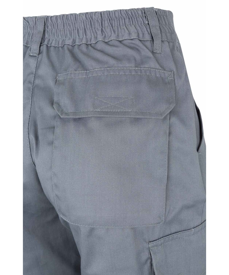 Ein zentraler Reißverschluss mit Knopfverschluss ermöglicht einfaches An- und Ausziehen. Erhältlich in mehreren Farben – darunter Königsblau, Marineblau und Tannengrün – lässt sich die Hose problemlos mit anderer Arbeitskleidung kombinieren.
