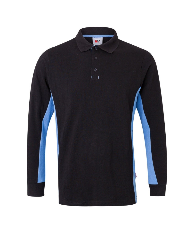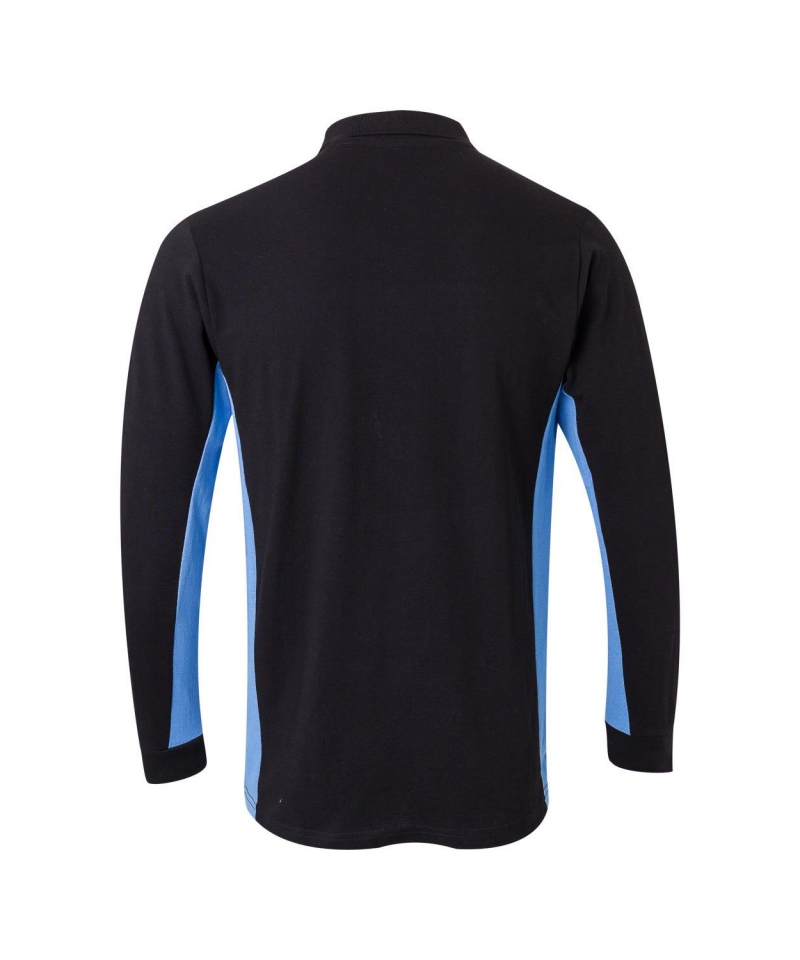 Die klassische Knopfleiste auf der Vorderseite ermöglicht individuelle Anpassung im Halsbereich, während die gerippten Ärmelbündchen für sicheren Sitz und leichten Kälteschutz sorgen. Auffällige Kontrastelemente an den Seiten, am Nackenband und an der Knopfleiste unterstreichen das moderne, dynamische Design des Shirts und verleihen ihm einen frischen, einheitlichen Look – ideal für den professionellen Einsatz.