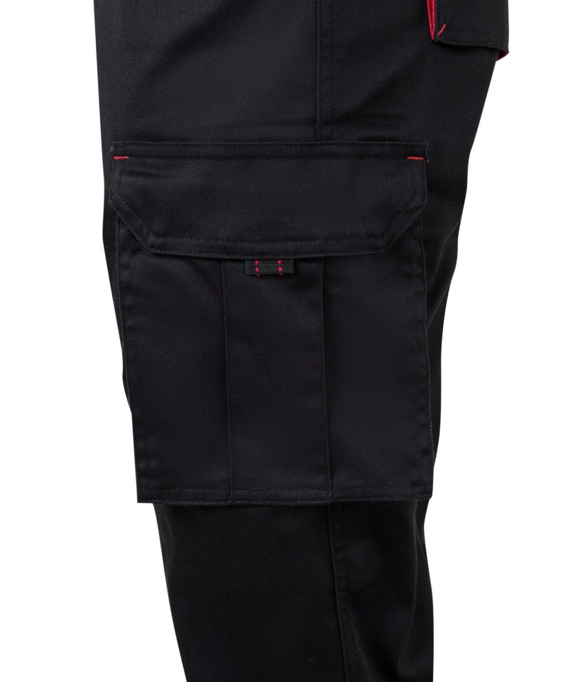Mit insgesamt sechs praktischen Taschen bietet die Hose viel Stauraum: zwei klassische französische Taschen, zwei Blasebalgtaschen mit doppeltem Falteneinsatz, Patte, Klettverschluss und Ziehlaschen sowie zwei Gesäßtaschen mit Patte, Klett und Griff. Kontrastfarbene Akzente an Nähten, Ziehlaschen und Taschen runden das moderne Erscheinungsbild ab.