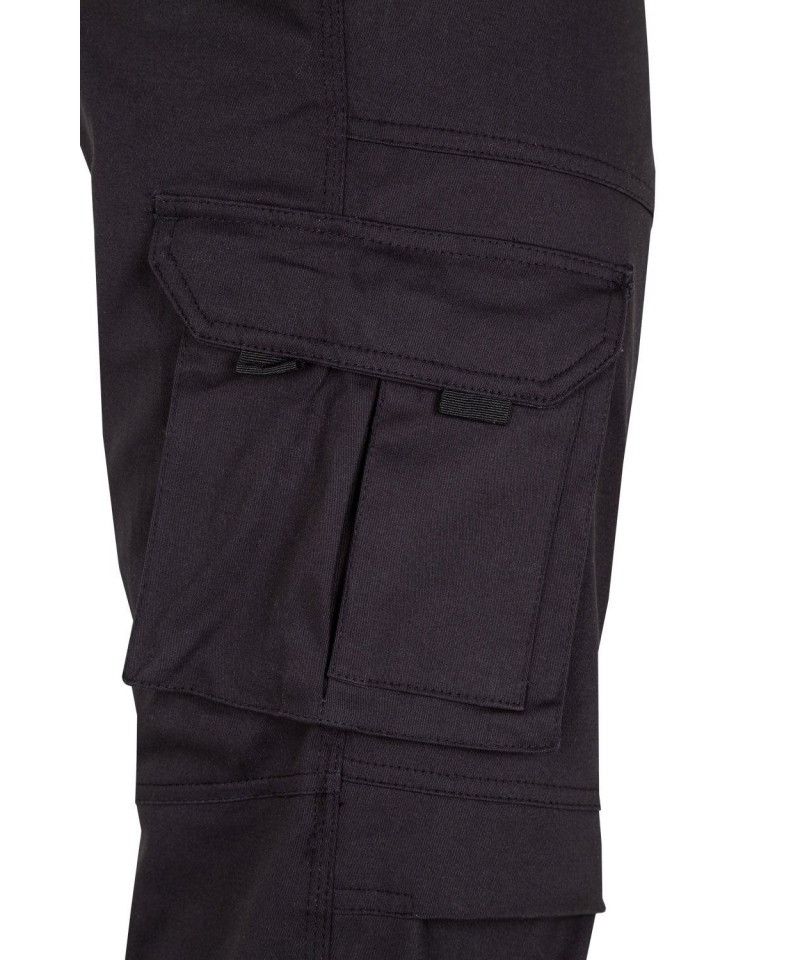 Dank erhöhtem Bund im Rücken und seitlich elastischem Bund sitzt die Hose sicher und bequem, auch bei langen Einsätzen. Dreifache Sicherheitsnähte gewährleisten hohe Strapazierfähigkeit. Mit insgesamt acht funktionellen Taschen bietet diese Hose ausreichend Platz für Werkzeuge und Arbeitsutensilien – perfekt für den anspruchsvollen Arbeitsalltag.