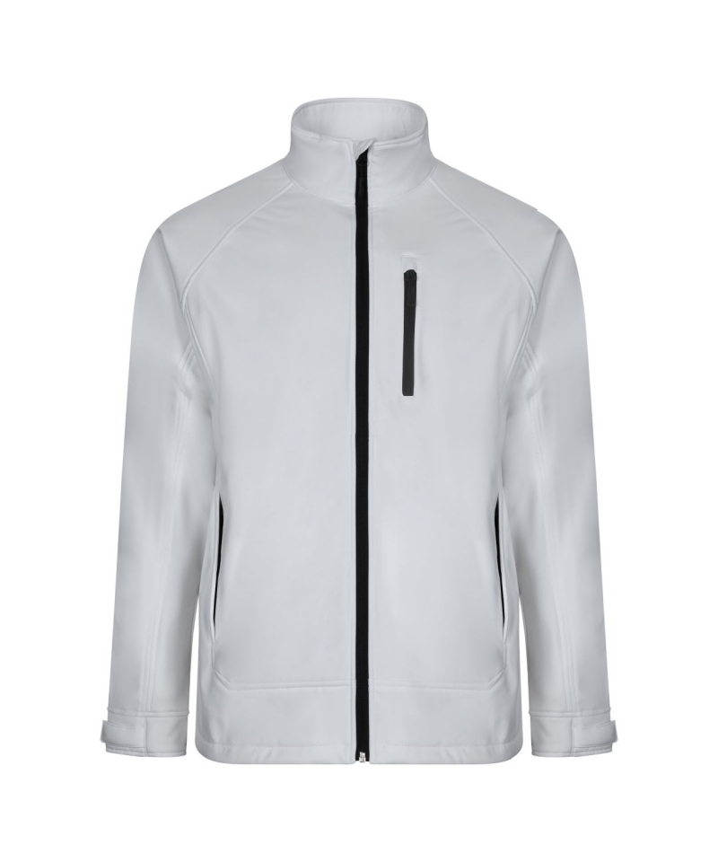 Moderne Herren-Softshelljacke mit Fleecefutter und TPU-Membran. Mit wasserdichtem Reißverschluss, fünf praktischen Taschen und hoher Bewegungsfreiheit