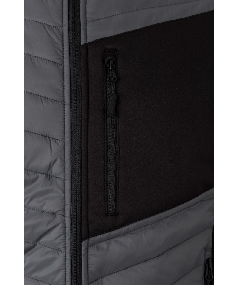 Diese moderne wattierte Arbeitsjacke vereint Wärme, Widerstandsfähigkeit und ein professionelles Design – ideal für wechselhafte Wetterbedingungen und anspruchsvolle Arbeitseinsätze. Die leichte Polyesterwattierung (125 g/m²) bietet angenehme Wärme ohne zusätzliches Gewicht, während das Außenmaterial aus Polyamid (40 g/m²) wind- und abriebfest ist. Technische Stretch-Einsätze und Softshell-Verstärkungen erhöhen die Strapazierfähigkeit an stark beanspruchten Stellen.