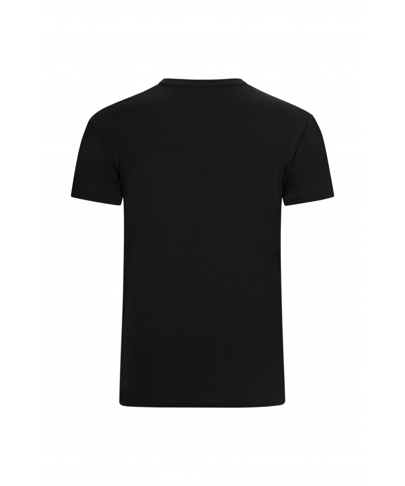 Ein gerippter Kragen mit Elastan (1x1) sorgt für einen angenehmen Sitz, während das verstärkte Nackenband ein Ausdehnen und Verformen verhindert. Die seitlichen Nähte verbessern die Passform und geben dem T-Shirt eine moderne Silhouette.