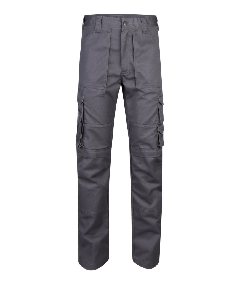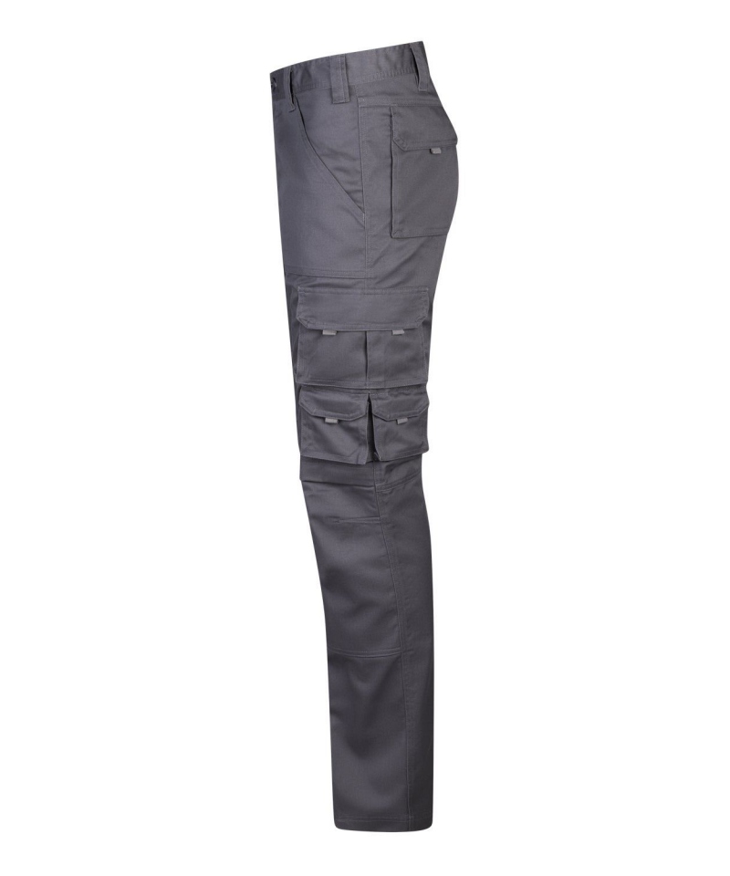 Schlanke Arbeitshose mit 9 funktionellen Taschen, Knie- und Gesäßverstärkung sowie Kniepolstertasche. Aus Twill (65 % Polyester – 35 % Baumwolle, 275 g/m²)