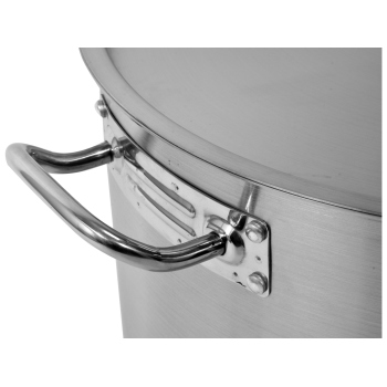 Er ist aus hochwertigstem 21/0 Edelstahl gefertigt, speziell entwickelt für die strengen Bedingungen in der professionellen Gastronomie. Ein Hauptvorteil dieses innovativen Stahls ist seine außergewöhnliche Wärmeleitfähigkeit – bis zu 30% höher im Vergleich zu Standard-Edelstahl 304, was zu schnellerem und effizienterem Kochen führt. Es zeichnet sich auch durch eine erhöhte Beständigkeit gegen mechanische Beschädigungen sowie gegen organische Säuren und Reinigungsmittel aus. Aus diesem Grund sind die Töpfe spülmaschinenfest in Industriemaschinen und sind zudem widerstandsfähig gegen intensives Oberflächenschrubben, wodurch sie ihr makelloses Aussehen behalten.