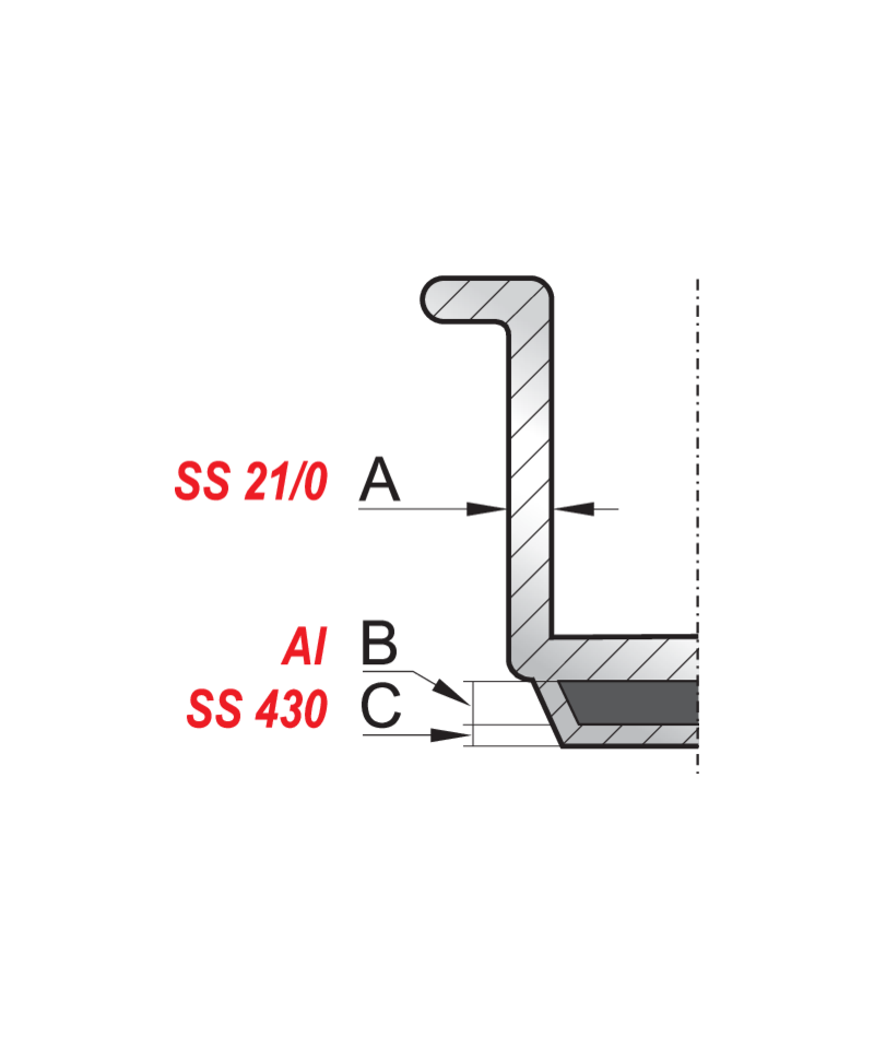 Die massiven Seitenwände des Topfes und der präzise angepasste Deckel sind aus dickem Stahl gefertigt, was eine deutlich längere Aufrechterhaltung der optimalen Temperatur im Vergleich zu Gefäßen aus Edelstahl Typ 304 garantiert.