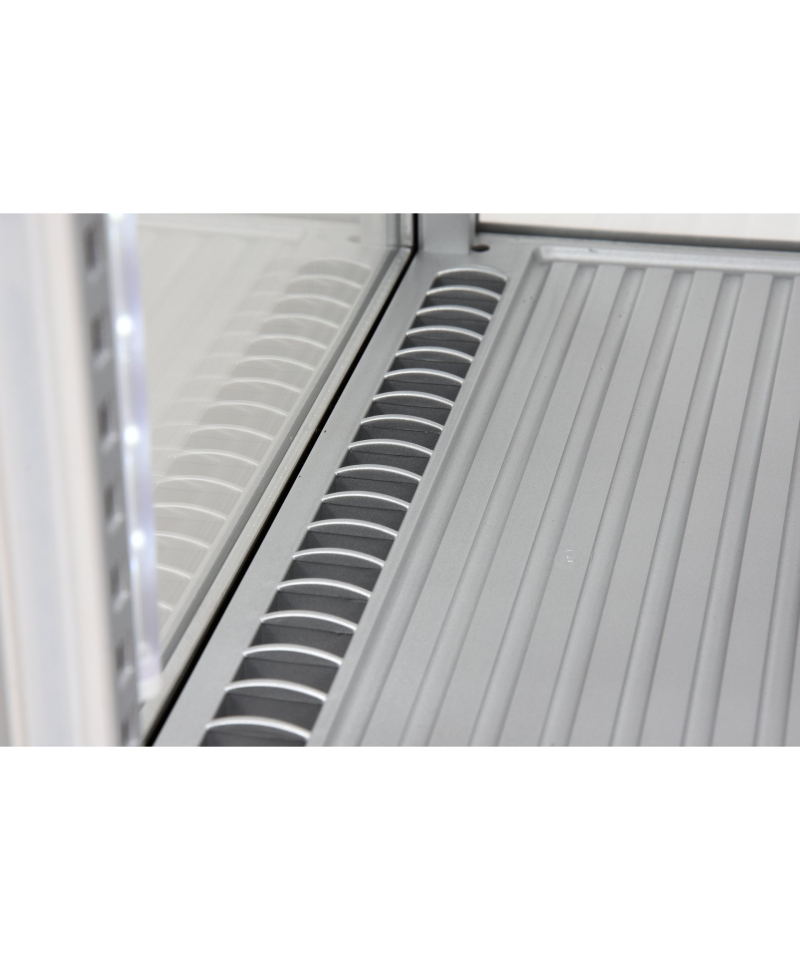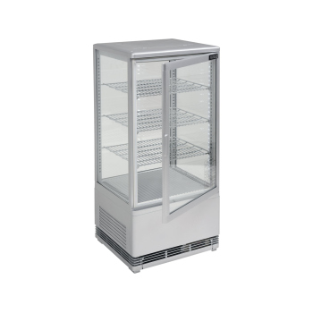 Freistehende YATO Kühlvitrine mit einem Fassungsvermögen von 78 Litern in elegantem Silber, mit Abmessungen von 428x386x960mm, ist die ideale Lösung für die professionelle Produktpräsentation. Konzipiert für Konditoreien, Cafés, Restaurants, Bars und Einzelhandelsgeschäfte, präsentiert sie perfekt Kuchen, Torten, Cocktails, Joghurts, Erfrischungsgetränke sowie Salate und kleine Snacks. Ihr modernes Design in Kombination mit der hohen Qualität der verwendeten Materialien macht die YATO Vitrine zu einem attraktiven Einrichtungselement für jedes Lokal. Zusätzlich unterstreicht die beidseitig eingebaute LED-Beleuchtung effektiv die ästhetischen Vorzüge der präsentierten Produkte und animiert Kunden wirkungsvoll zur Auswahl. Die 78L Vitrine ist ausgestattet mit drei verstärkten Regalböden, beschichtet mit einer schützenden PVC-Schicht, mit Abmessungen von 357x310 mm und höhenverstellbarer Befestigung. Der Zugang zum Innenraum wird durch zu öffnende Glastüren erleichtert. Alle Scheiben – vorne, seitlich und in den Türen – bestehen aus doppelschichtigem gehärtetem Glas, was außergewöhnliche Haltbarkeit und hervorragende Isolationseigenschaften garantiert. Das Gerät arbeitet in einem präzisen Temperaturbereich **von 0°C bis +12°C**, unter Verwendung des ökologischen Kältemittels R600a. Die Anwendung der **Zwangskühlungstechnologie** zusammen mit der **automatischen Abtaufunktion** gewährleistet nicht nur eine hohe Arbeitseffizienz, sondern auch eine erhebliche **Energieeffizienz**. Die Zwangskühlung garantiert eine gleichmäßige Luftverteilung in der gesamten Vitrine und hält eine stabile Temperatur auf jedem Regalboden. Der durchschnittliche jährliche Energieverbrauch beträgt **1003 kWh**. Die Steuerung der Vitrine erfolgt über einen intuitiven elektronischen Regler mit **digitaler Temperaturanzeige**. Ideal für: Cafés, Konditoreien, Hotels, Restaurants, Bars, Einzelhandelsgeschäfte, Lebensmittelgeschäfte