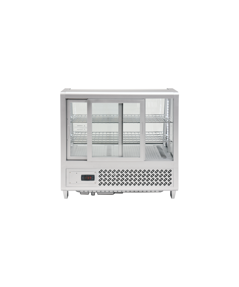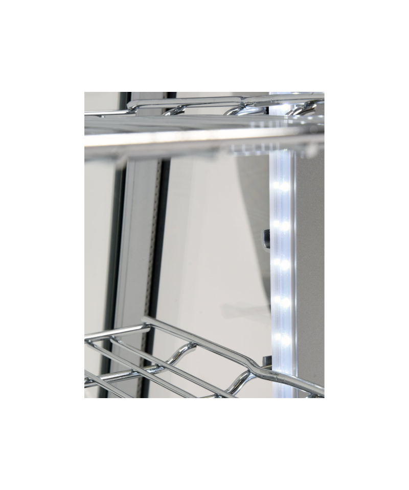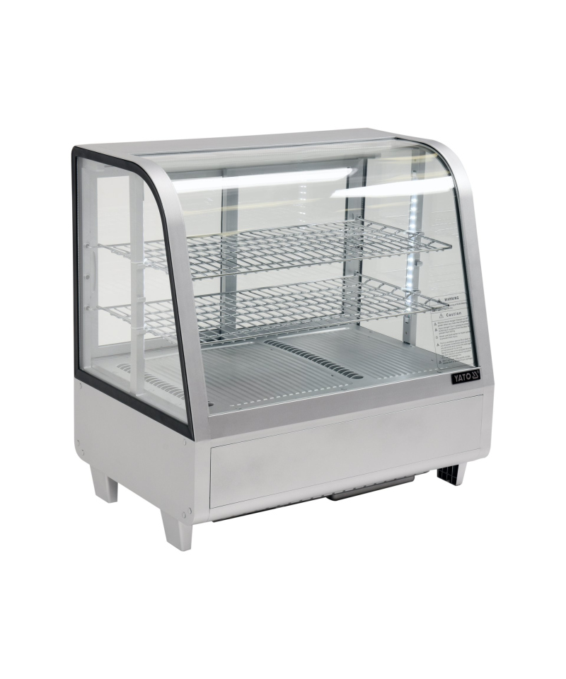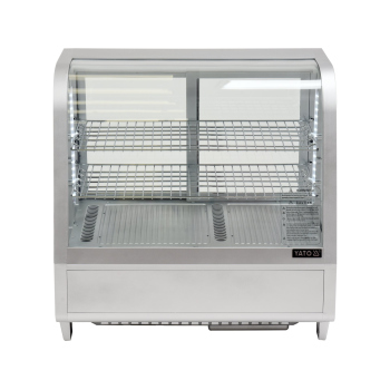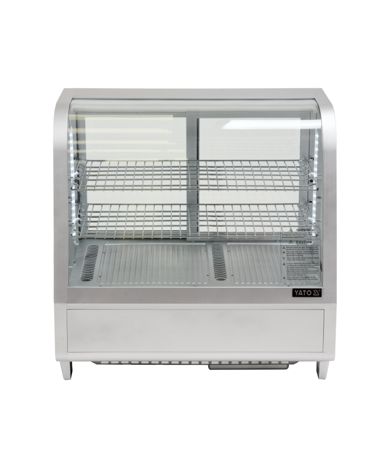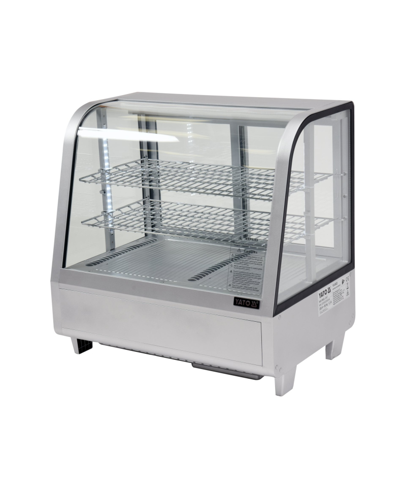 YATO Silberne Verstellbare Kühlvitrine 100L – Eleganz und Funktionalität in Einem. Wir präsentieren eine elegante YATO Kühlvitrine mit einem Fassungsvermögen von 100 Litern in stilvollem Silber-Finish, ideal für die professionelle Präsentation verschiedener Produkte. Entwickelt für Konditoreien, Cafés, Restaurants und Einzelhandelsgeschäfte, präsentiert die YATO Vitrine Kuchen, Torten, Cocktails und Getränke perfekt. Ihr modernes Design in Kombination mit hochwertigsten Materialien garantiert nicht nur ein ästhetisches Erscheinungsbild, sondern auch Langlebigkeit und Zuverlässigkeit. Die eingebaute LED-Beleuchtung hebt die visuellen Vorzüge der ausgestellten Produkte effektiv hervor, zieht die Aufmerksamkeit der Kunden wirksam an und regt zum Kauf an. Dank ihres Fassungsvermögens von 100 Litern und zwei verchromten, höhenverstellbaren Einlegeböden, jeder mit einer Tragfähigkeit von bis zu 10 kg, bietet die Vitrine flexible Möglichkeiten zur Raumgestaltung. Leichter Zugang zum Innenraum wird durch Schiebetüren aus gehärtetem Glas gewährleistet. Ebenso garantiert die panoramische, abgerundete Frontscheibe, ebenfalls aus gehärtetem Glas gefertigt, hervorragende Sichtbarkeit, außergewöhnliche Haltbarkeit und optimale Isolationseigenschaften, wodurch die Frische der Produkte erhalten bleibt. Das Gerät arbeitet in einem präzisen Temperaturbereich von 0°C bis +12°C, unter Verwendung des umweltfreundlichen Kältemittels R600a. Die angewandte statische Kühltechnologie mit einer oberen Dampfdüse und die automatische Abtaufunktion gewährleisten nicht nur eine hohe Arbeitseffizienz, sondern auch eine erhebliche Energieeffizienz, was durch einen durchschnittlichen jährlichen Energieverbrauch von nur 730 kWh bestätigt wird. Die intuitive Steuerung der Vitrine erfolgt über ein elektronisches Bedienfeld mit einem übersichtlichen Temperaturanzeige, was eine präzise Verwaltung der Lagerbedingungen ermöglicht.