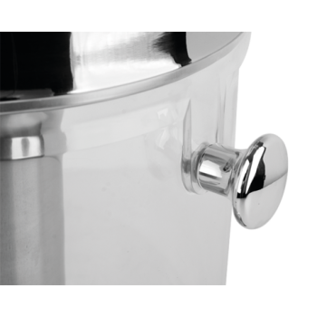 Der Saftbehälter selbst besteht aus strapazierfähigem Polycarbonat, das sich durch eine sehr hohe Schlagfestigkeit auszeichnet und extrem leicht zu reinigen ist. Darüber hinaus befindet sich im Inneren des Behälters ein spezielles Eisrohr, das eine effektive zusätzliche Kühlung der servierten Getränke ermöglicht und deren ideale Temperatur aufrechterhält.