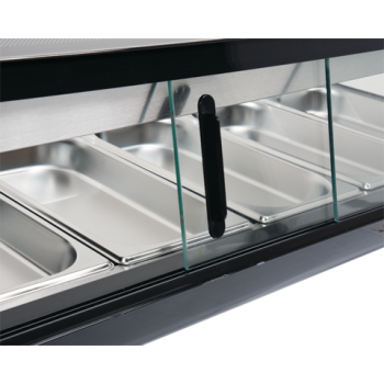 Der praktische YATO Kühlaufsatz bietet Platz für bis zu 6 GN 1/3 Behälter mit einer Tiefe von 40 mm, hergestellt aus hochwertigem Edelstahl, die im Lieferumfang enthalten sind und somit sofort nach dem Auspacken einsatzbereit sind. Leichtgängige Glasschiebetüren garantieren einen einfachen Zugang zu den Produkten. Sowohl die Türen als auch die beeindruckende panoramische, abgerundete Frontscheibe sind aus strapazierfähigem gehärtetem Glas gefertigt. Diese Lösung bietet nicht nur außergewöhnliche Haltbarkeit und Nutzungssicherheit, sondern auch hervorragende Isolationseigenschaften, die eine optimale Innentemperatur gewährleisten.